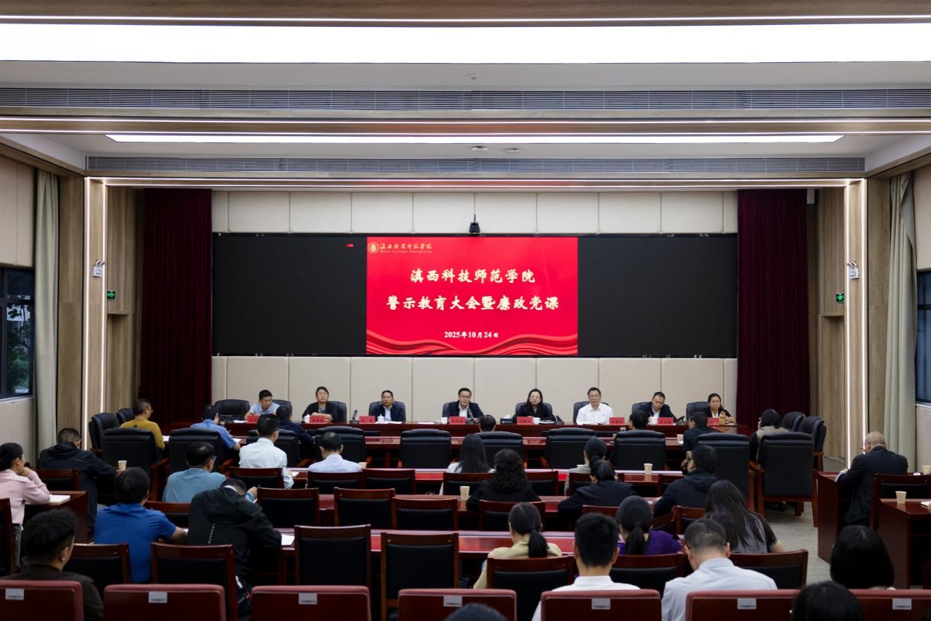 10月24日,校党委书记阮凤斌主持召开警示教育会并讲授廉政党课,深入学习贯彻习近平总书记关于党的自我革命的重要思想,深化落实习近平总书记考察云南重要讲话精神,认真学习落实全省警示教育大会精神,持续巩固拓展深入贯彻中央八项规定精神学习教育成果。